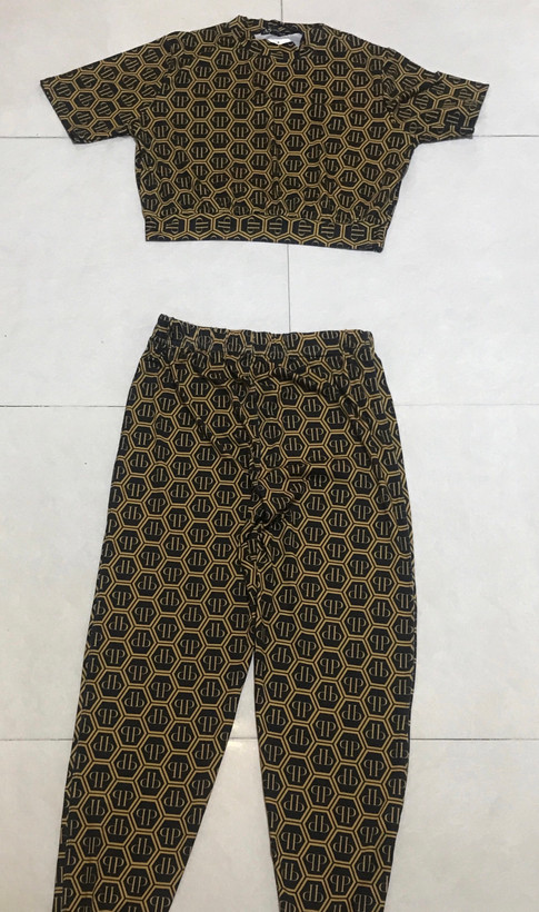 کراپ و شلوار ست طرح فلیپپلین زرد و مشکی CP238