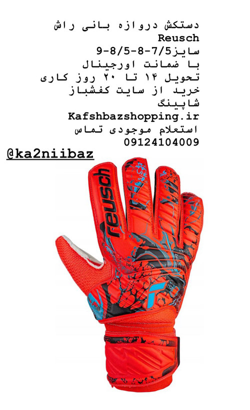 لطفا قبل از خرید و نهایی کردن سفارش استعلام موجودی بگیرید با ضمانت اورجینال تحویل ۱۴ تا ۲۰ روز کاری در هنگام خرید دقت فرمایید برای اینکه تامین محصول از ترکیه و دبی و عمان و کشورهای اروپایی هست امکان تعویض و مرجوعی وجود ندارد دستکش های دروازه بان مردانه Reusch محافظت موثری در برابر ضربه ها و حفظ توپ را بهبود می بخشد. فوم مصنوعی که مقاومت در برابر سایش بالایی دارد دارای خاصیت بالشتکی عالی است. یک مدل بادوام برای مبتدیان. تکنولوژی کاف الاستیک با بست های نواری برای بازی بر روی سطوح طبیعی و مصنوعی.